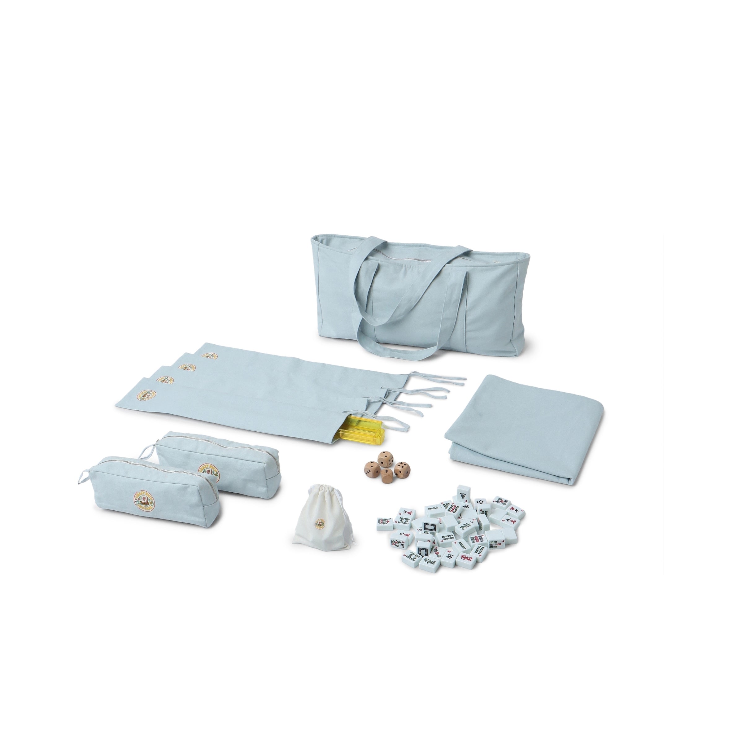 Both products come with Tiles, Racks and a Bag but the Classic Mahjong Set has a few special additions - Rack Covers, a Tablecloth and an option to personalize your bag!
